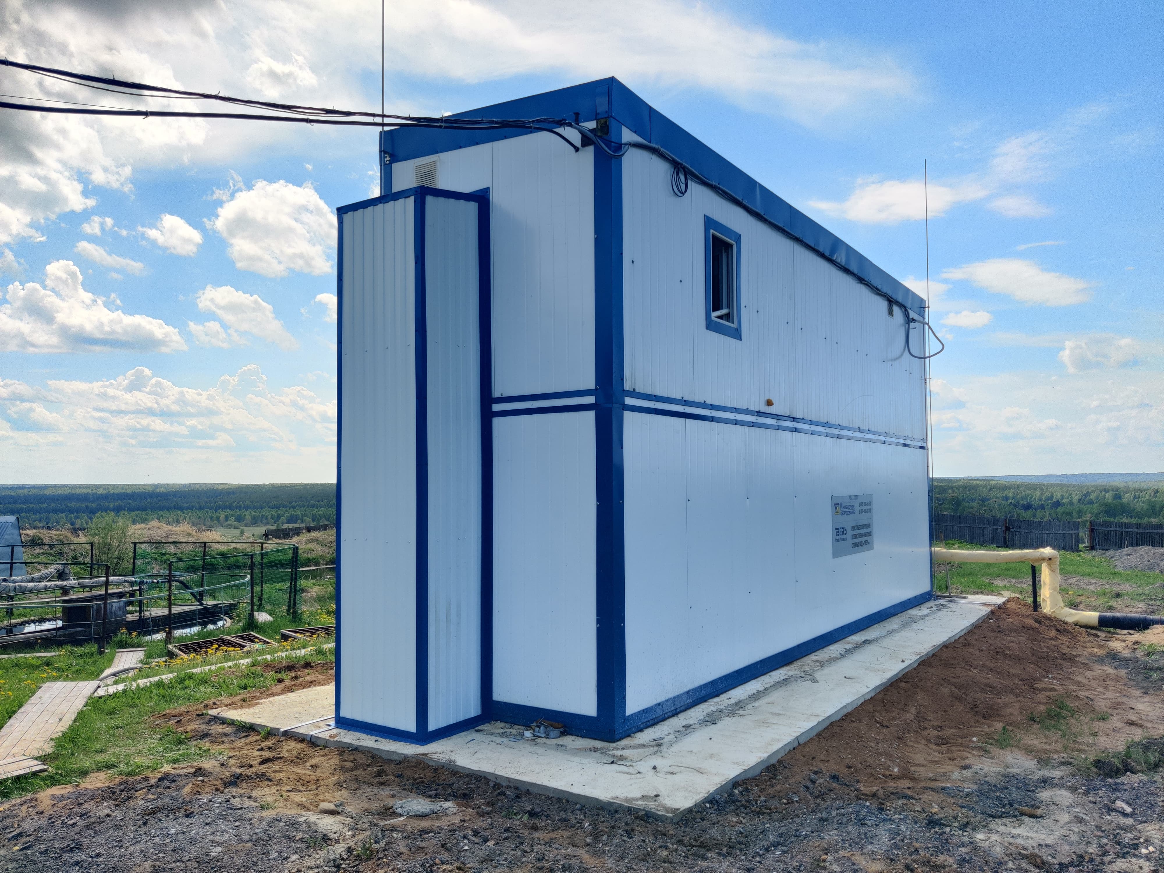 Станция очистки бытовых сточных вод "ТВЕРЬ-25БМ" представляет из себя утепленное здание из блок-модулей, установленных на фундаменте, со всем технологическим оборудованием внутри.